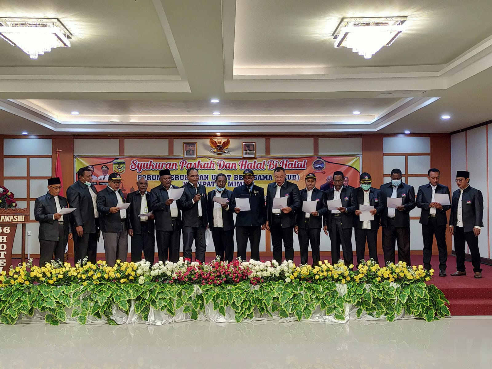 TIMIKA – Forum Kerukunan Umat Beragama (FKUB) Kabupaten Mimika, menggelar syukuran Paskah dan Halal Bihalal, di aula Hotel dan Resto Cenderawasih, pada Kamis (12/5/2022).