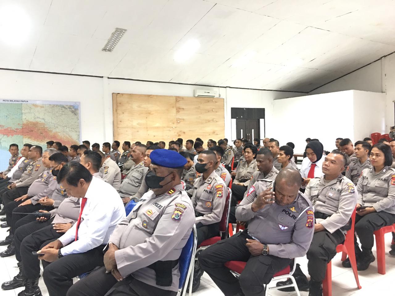 TIMIKA – Jajaran Polres Mimika mengikuti kegiatan pelatihan pelayanan publik dalam rangka quick wins presisi melalui pengembangan Sumber Daya Manusia (SDM) unggul keterampilan dan etika.