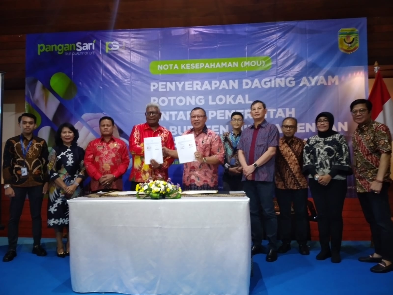 Presiden Direktur PT Pangansari Utama, Maghfur Lasah mengatakan, MoU ini adalah komitmen dari Pangansari, yang tidak hanya mementingkan bisnis semata, tetapi ingin turut serta membangun Mimika melalui pemberdayaan peternak lokal. Bagi Pangansari, pemberdayaan peternak lokal, tidak saja dilakukan hanya untuk mementingkan kuantitas, tetapi daging ayam lokal dari Mimika diarahkan memiliki standar kualitas sesuai kebutuhan Pangansari.