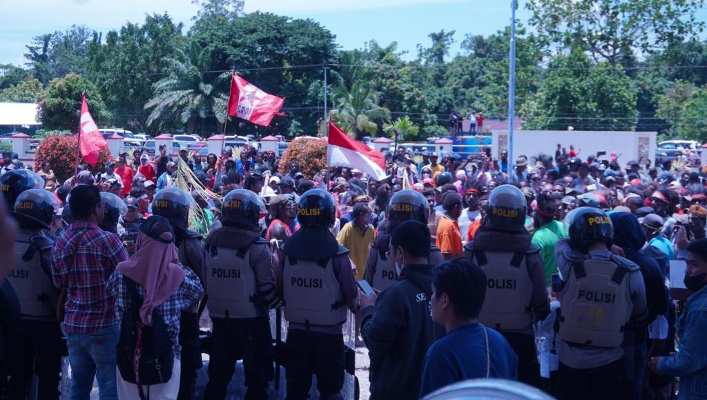 TIMIKA, pojokpapua.id – Massa yang terdiri dari masyarakat, organisasi kemahasiswaan dan sekelompok Aparatur Sipil Negara (ASN) pendukung Plt Bupati Mimika, Johannes Rettob mendatangi kantor Kejaksaan Negeri Timika, Selasa (7/3/2023) untuk menyampaikan aspirasi terkait kasus yang sedang melilit mantan Kadishub Mimika pada Tahun 2015-2018 tersebut.