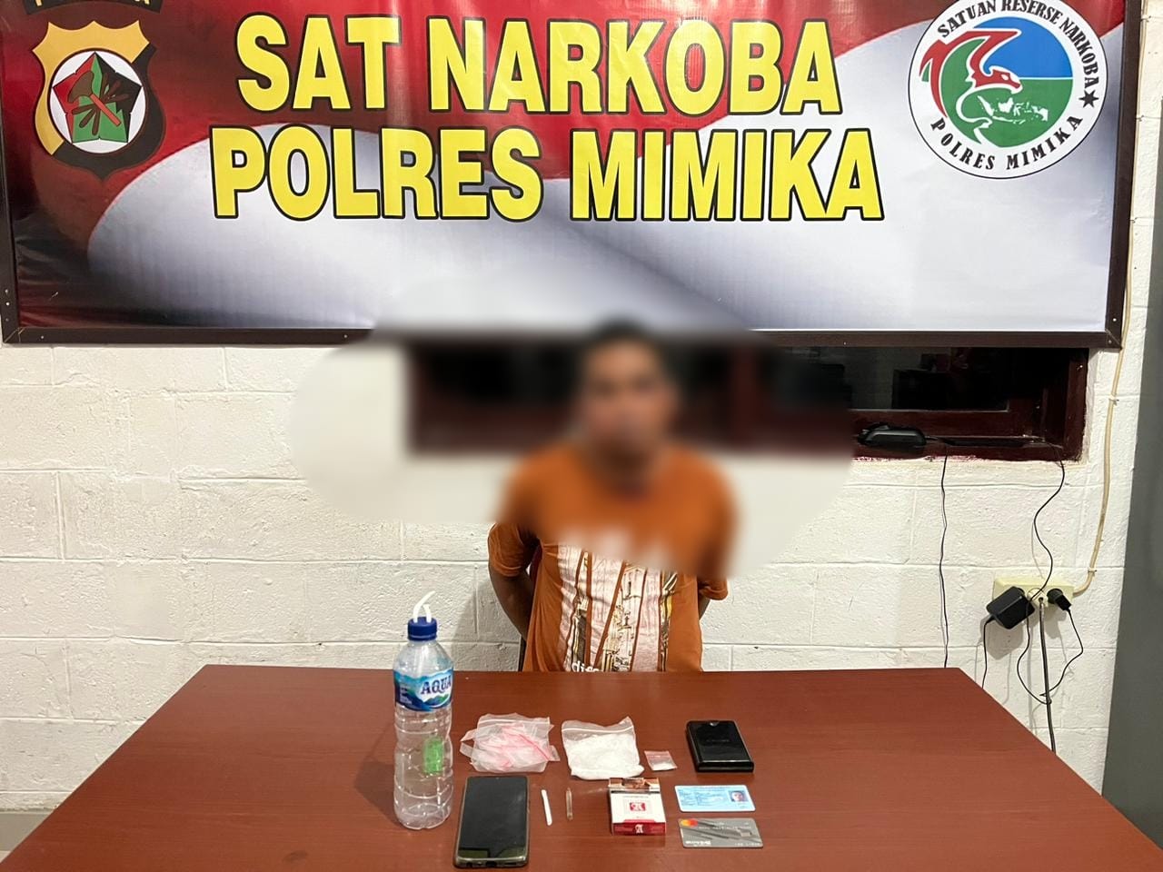 TIMIKA, pojokpapua.id – Satuan Resnarkoba Polres Mimika mengamankan seorang pria berinisial F yang merupakan pelaku kepemilikan Narkotika jenis sabu-sabu di KM 7, Timika pada (6/6/2023) malam.