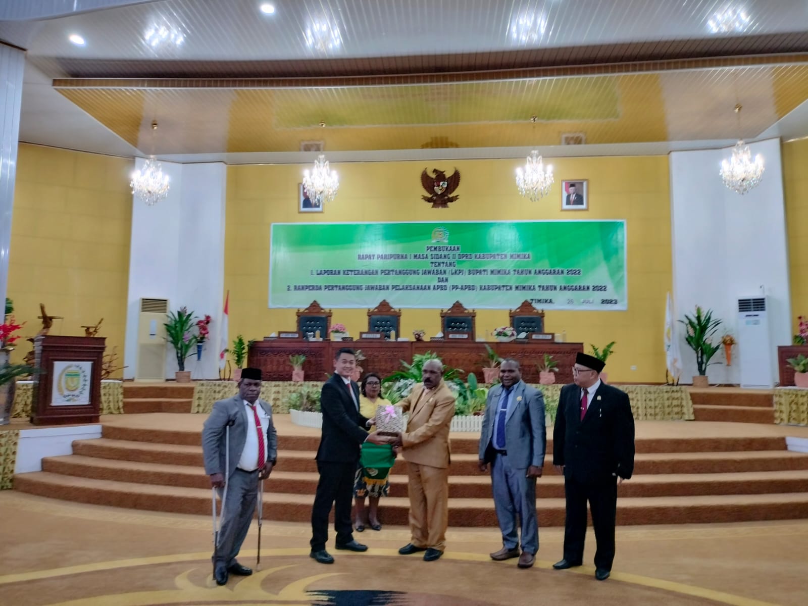 Dokumen LKPJ diserahkan dalam pembukaan Rapat Paripurna I Masa Sidang II DPRD Kabupaten Mimika tentang Laporan Keterangan Pertanggungjawaban (LKPJ) Bupati Mimika Tahun Anggaran 2022 dan Ranperda Pertanggungjawaban Pelaksanaan APBD (PP-APBD), Rabu (26/7/2023) di ruang rapat paripurna.