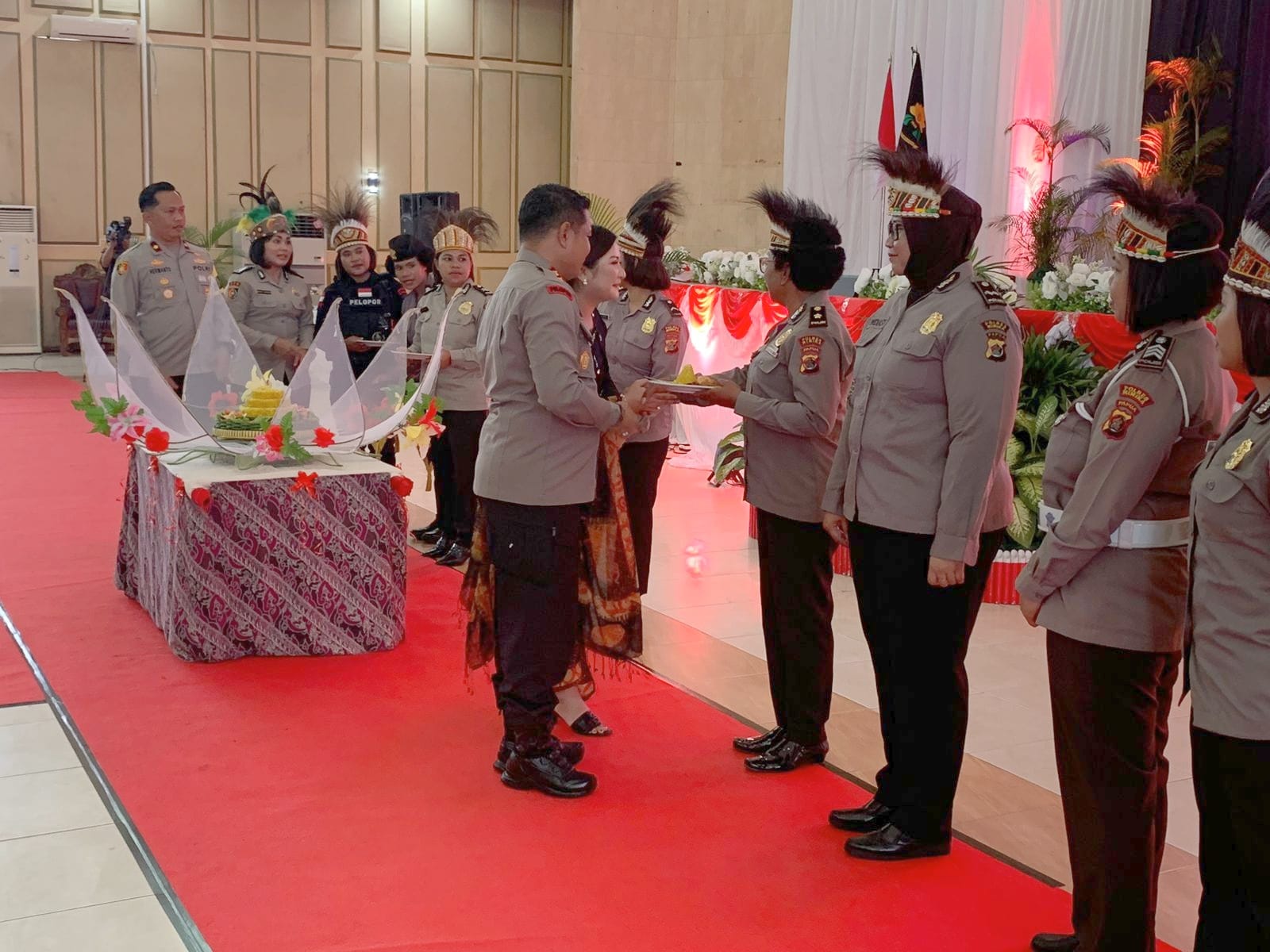 Acara syukuran tersebut, ditandai dengan pemotongan tumpeng oleh Kapolres Mimika, AKBP I Gede Putra, SH SIK dan diserahkan kepada perwakilan anggota Polwan yang berdinas di Polres Mimika.