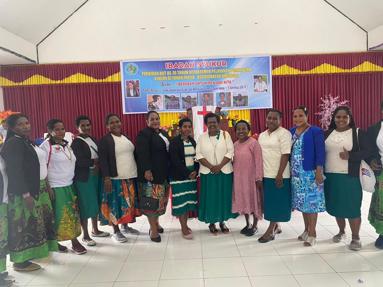 Ibadah diikuti biro pelayanan perempuan dari 6 klasis yang ada di wilayah Koordinator Amungsa. Ibadah syukur ini mengangkat tema ‘Berubah Untuk Menjadi Kita’ dan sub tema ‘Kamu adalah Bait Allah dan Roh Allah diam di Dalam Kamu’. Ibadah dipimpin oleh Lidia Pigai Pigome selaku Ketua Departemen Pelayanan Perempuan KINGMI Koordinator Amungsa.