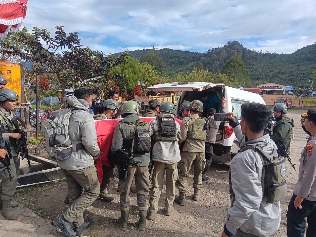 TIMIKA, pojokpapua.id – Jenazah almarhum Briptu Agung, korban kontak tembak antara aparat keamanan dengan Kelompok Kriminal Bersenjata ( KKB) di Distrik Serambakon, Kabupaten Pegunungan Bintang telah diterbangkan pulang ke kampung halamannya Manado, Provinsi Sulawesi Utara pada Selasa (19/9/2023).