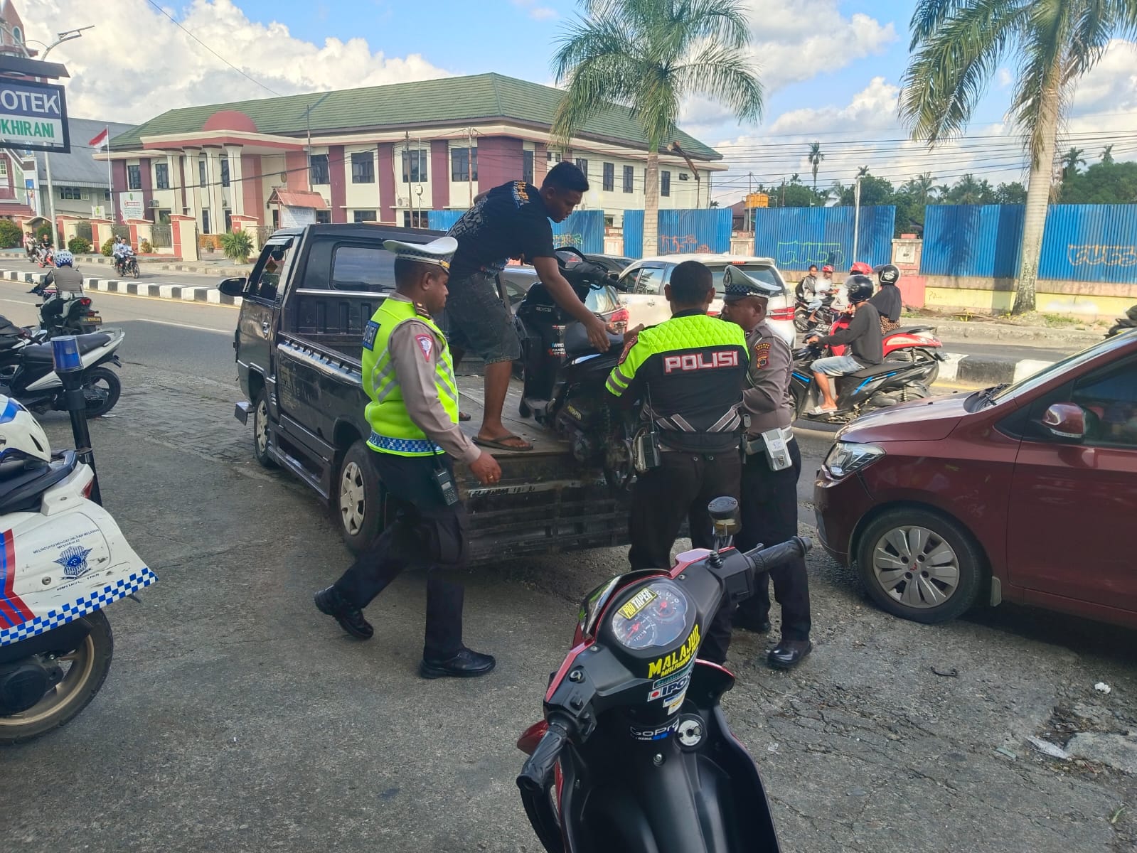 “Terutama pengendara sepeda motor yang tidak menggunakan helm, lalu sepeda motor memakai knalpot racing atau brong, dan TNKB palsu,”ungkap Ipda Hempi.