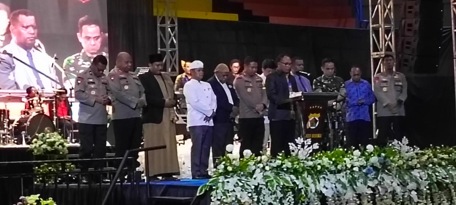 TIMIKA, pojokpapua.id – Untuk menyukseskan pelaksanaan Pemilihan Kepala Daerah (Pilkada) di Tanah Papua, maka Polda Papua bersama Persekutuan Gereja-Gereja di Mimika (PGGM) melaksanakan Kebaktian Kebangkitan Rohani (KKR) di Gor futsal Mimika pada Minggu (9/6/2024).