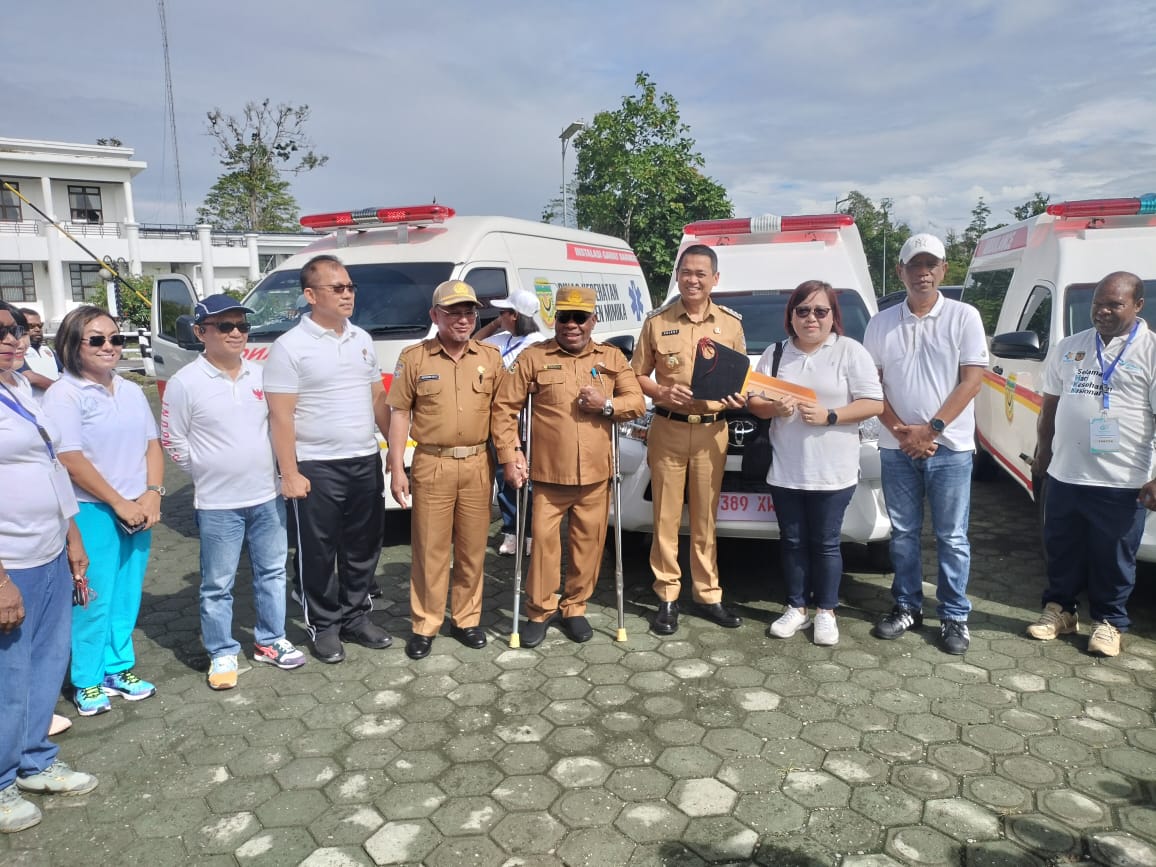 Pj Bupati Mimika Serahkan 7 Mobil Ambulance dan Mobil Jenazah