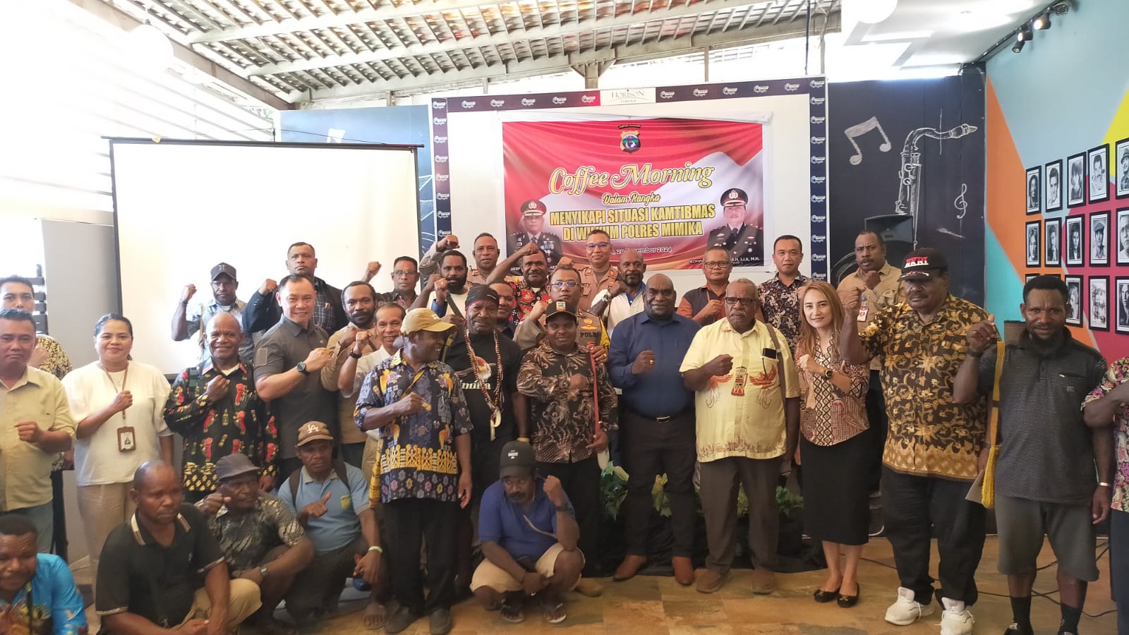 TIMIKA, pojokpapua.id – Kapolres Mimika, AKBP I Komang Budiartha, mengadakan acara Coffe Morning bersama tokoh agama (Toga) dan tokoh masyarakat (Tomas) di Hotel Horison Ultima, Jumat (20/12/2024). Pertemuan ini bertujuan untuk membahas situasi kamtibmas dan memperkuat komitmen bersama dalam menjaga keamanan di Kabupaten Mimika.